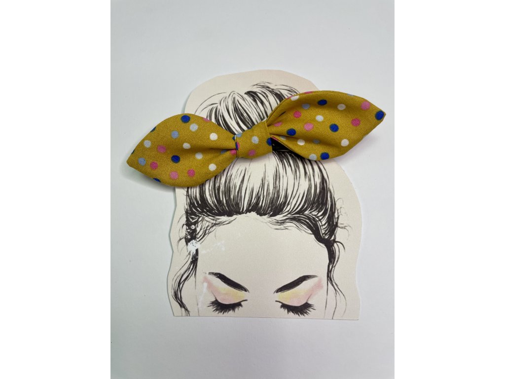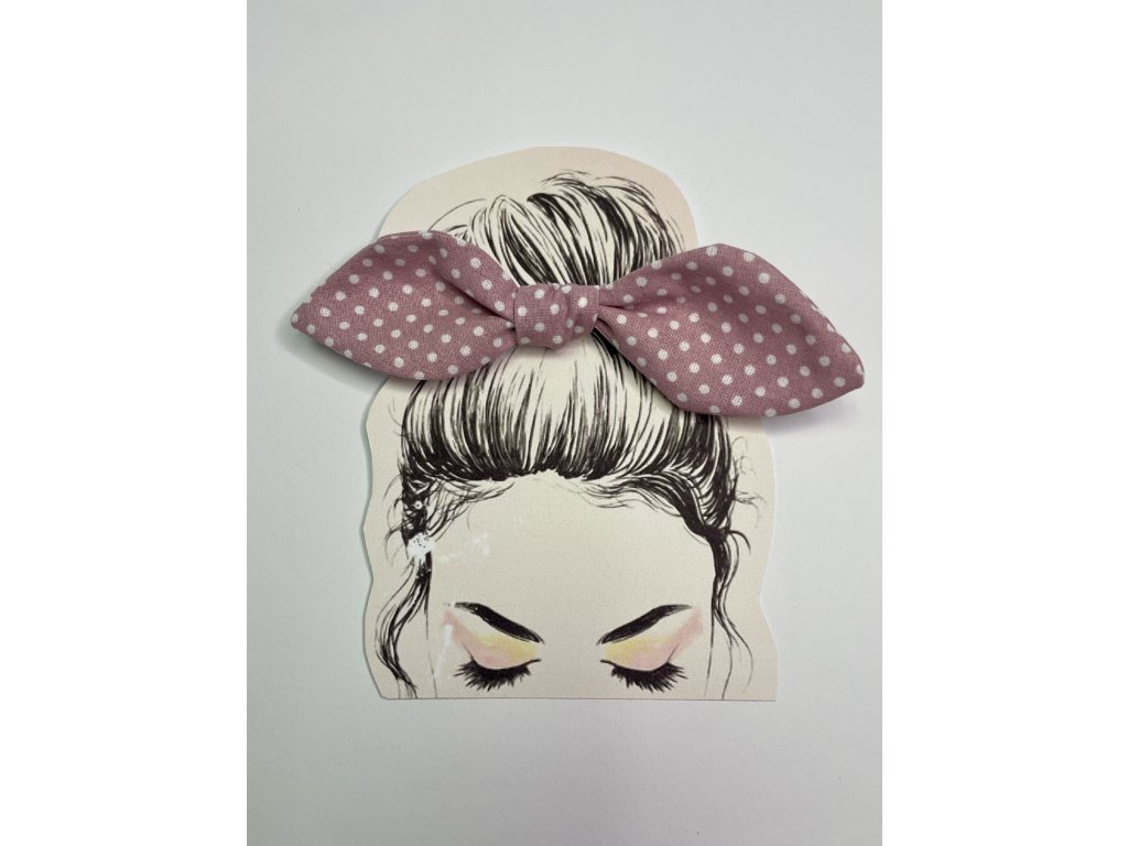 Pin up gumičku tvorí mašľa z bavlnenej látky, ktorá je uviazaná o klasickú tenkú gumičky.