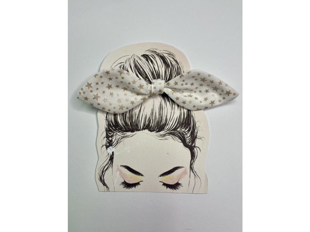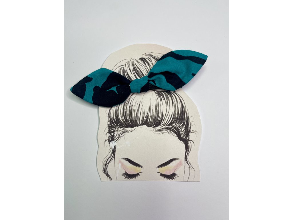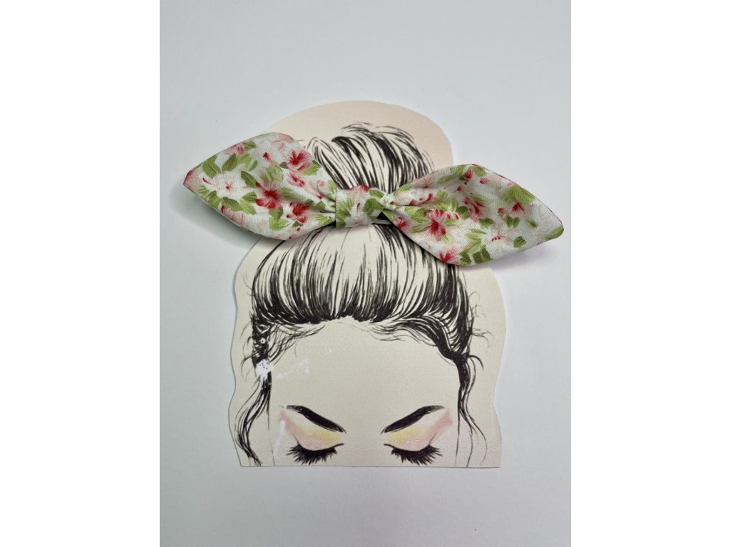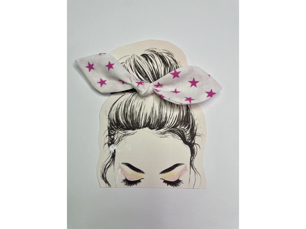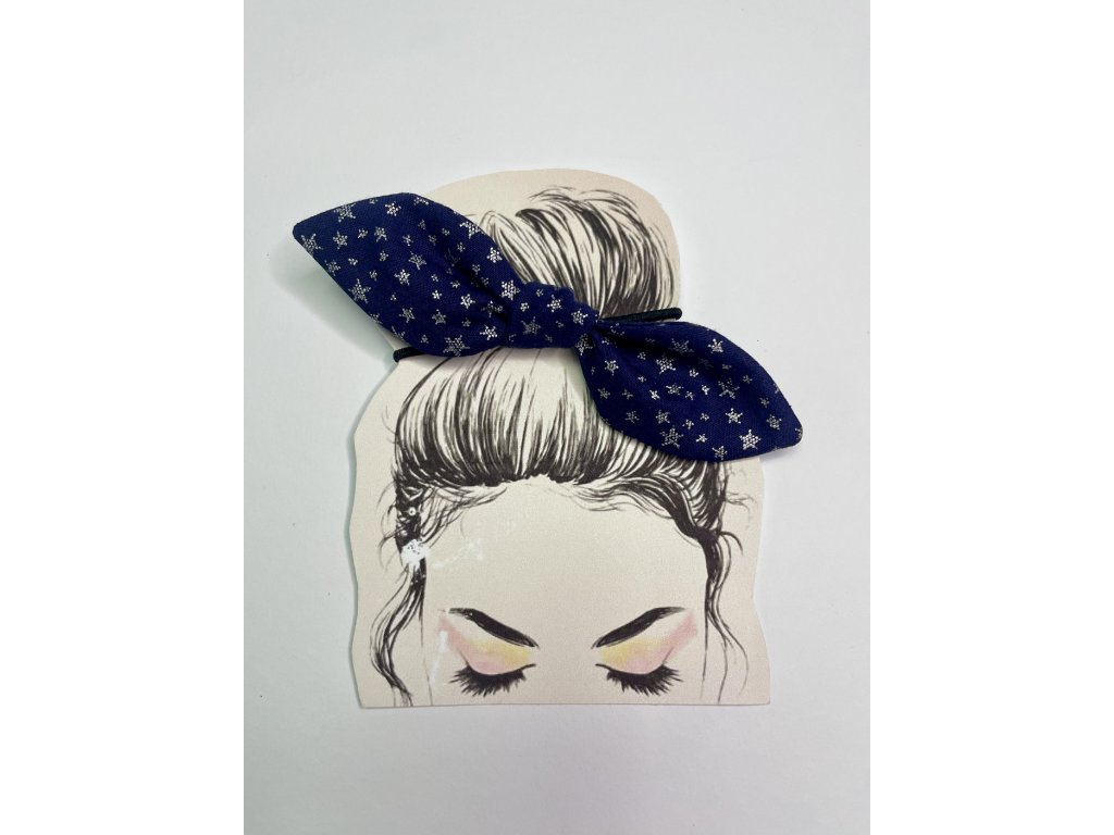 Pin up gumičku tvorí mašľa z bavlnenej látky, ktorá je uviazaná o klasickú tenkú gumičky.