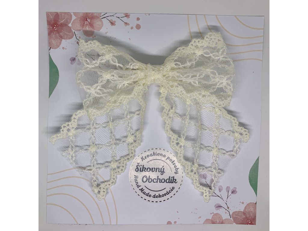 Sponku tvorí mašľa z čipky a kovová spona do vlasov.