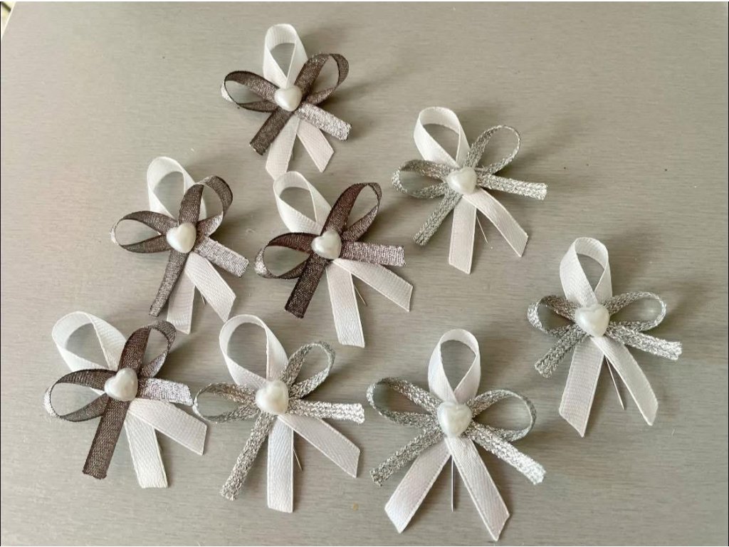 Materiál: Na výber je viacero materiálov – saténové stuhy, krajka, jutovina, drobné kvietky či ozdobné doplnky.